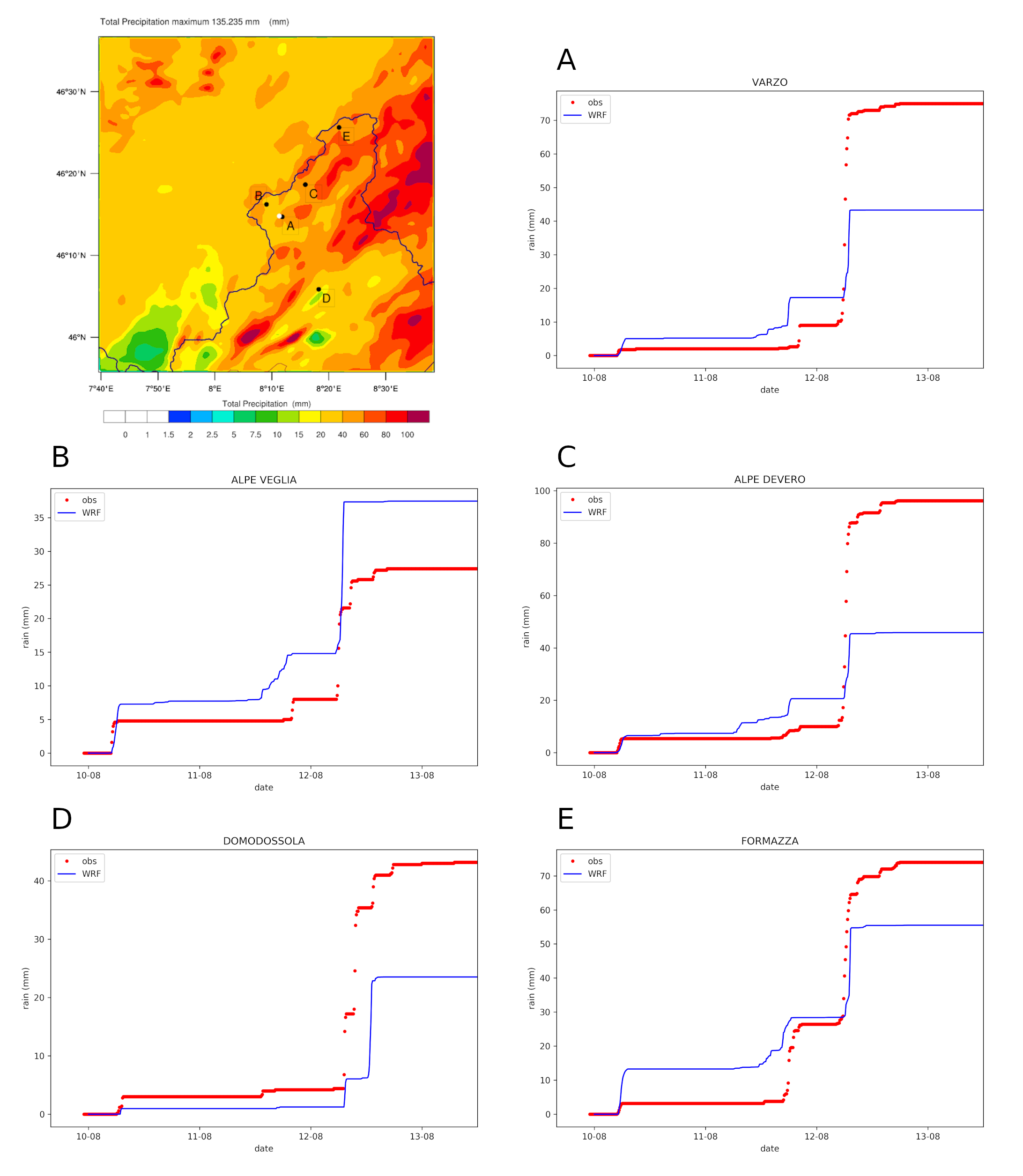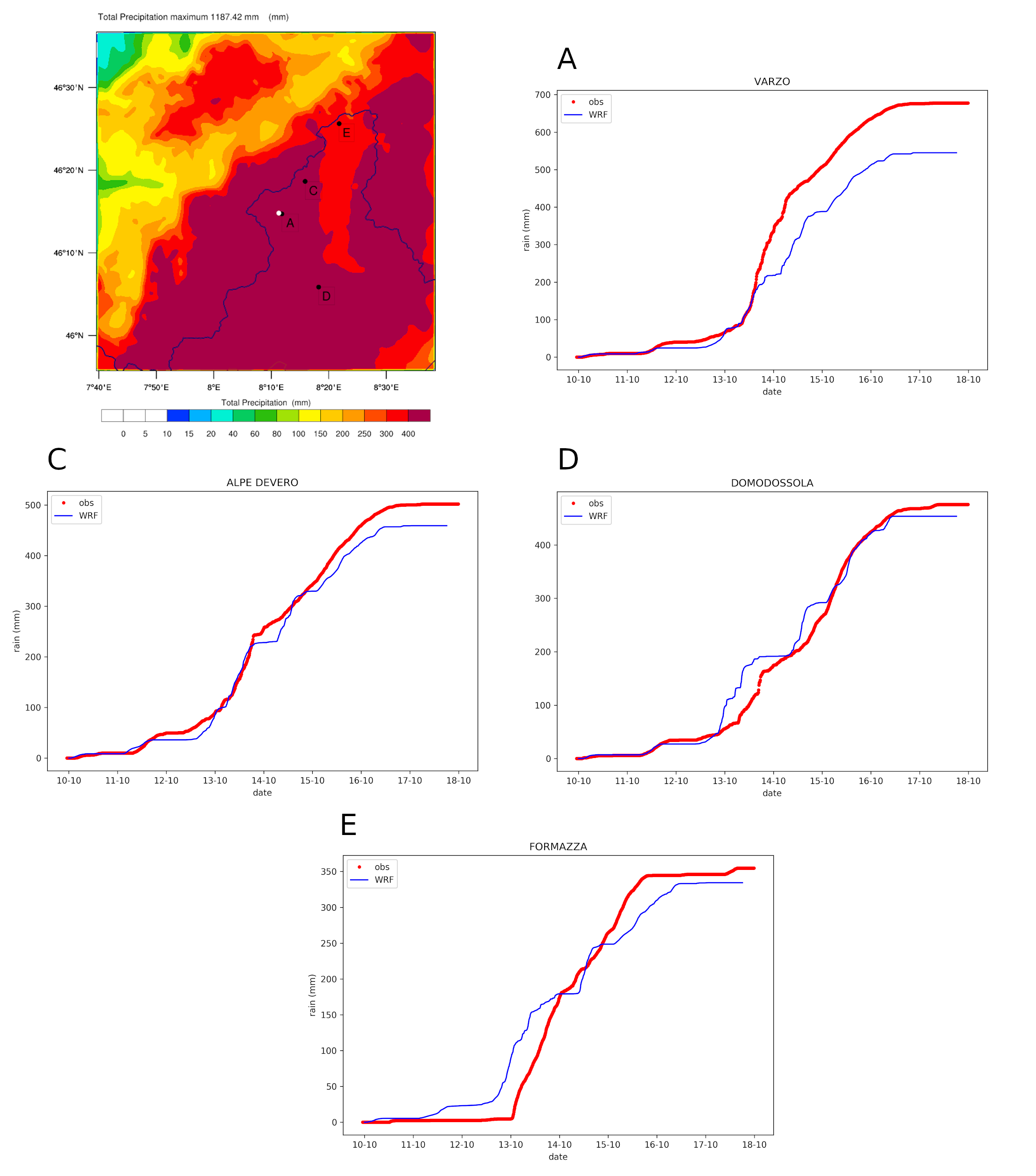 Parallelamente a questo evento abbiamo studiato anche il precedente che ha causato un debris flow nel bacino del Rio Croso, ed è Ottobre 2000. Nel caso di Ottobre 2000 la precipitazione è stata prevista con più accuratezza e con una sottostima minore.